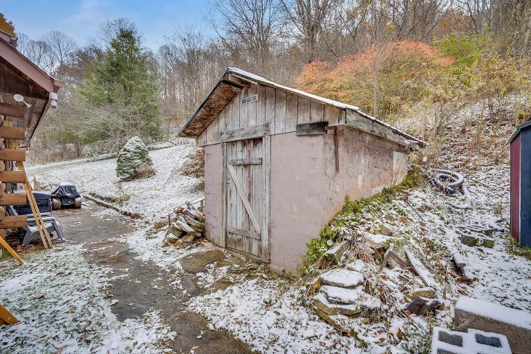 The acreage includes fruit trees, open land, and a dairy area that support homesteading goals. Two driveway entrances provide easy access for guests, equipment, or outdoor supplies. A storage shed helps organize tools and seasonal items. The expansive outdoor setting encourages exploration, small livestock, gardening, or recreational activities. These peaceful surroundings create the perfect backdrop for mornings in the yard or quiet evenings on the porch.