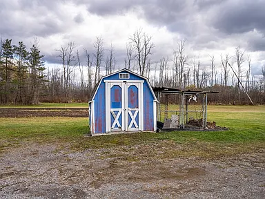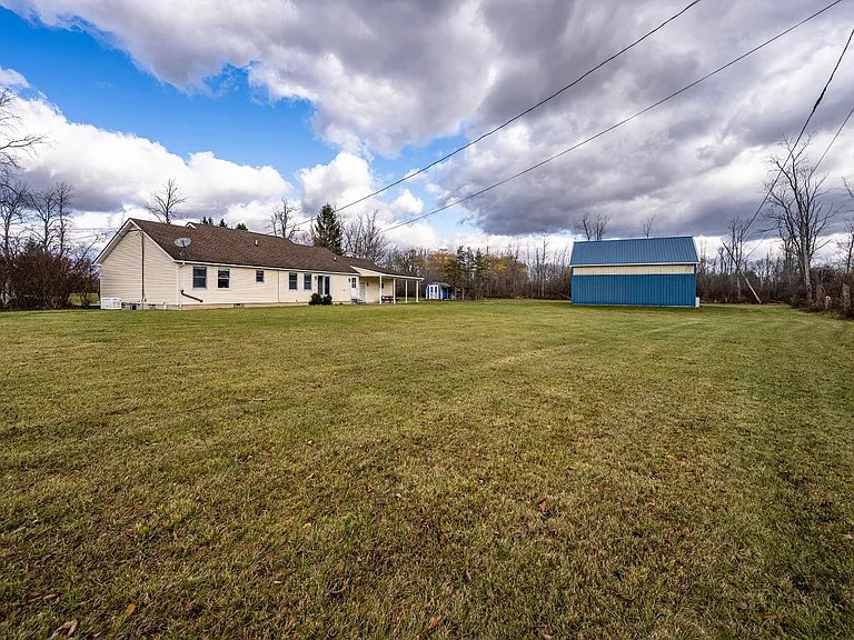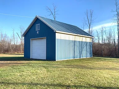 There is an attached 2-car garage as well as a pole barn with power in the back — an ideal shelter for tools, outdoor work, or potential agricultural uses.