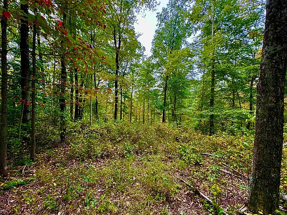 The wooded sections add privacy, shade, and wildlife habitat, while elevated areas provide scenic mountain views across the surrounding countryside. This mix of terrain allows owners to enjoy open spaces near potential building sites while preserving wooded areas for seclusion and exploration.