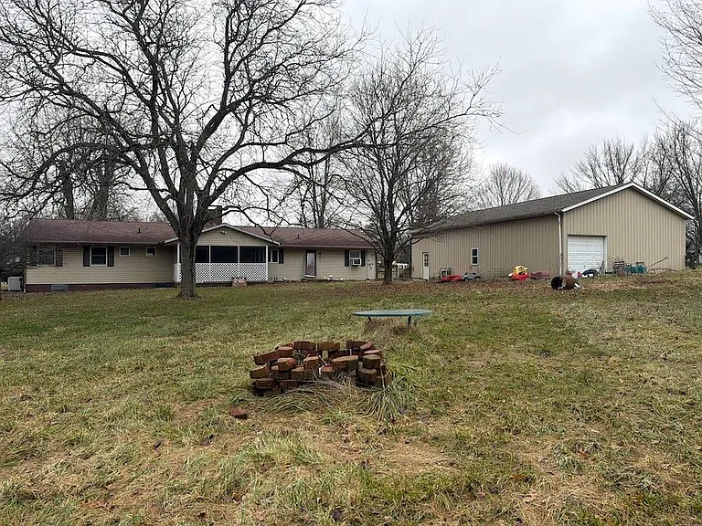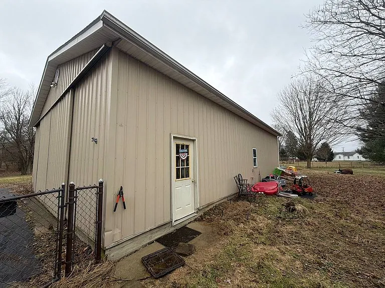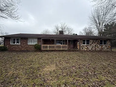 This family-friendly home is located in a quiet residential area of Cardington, Ohio and is built with a solid structure that combines a brick and stone facade with a sloping roof.