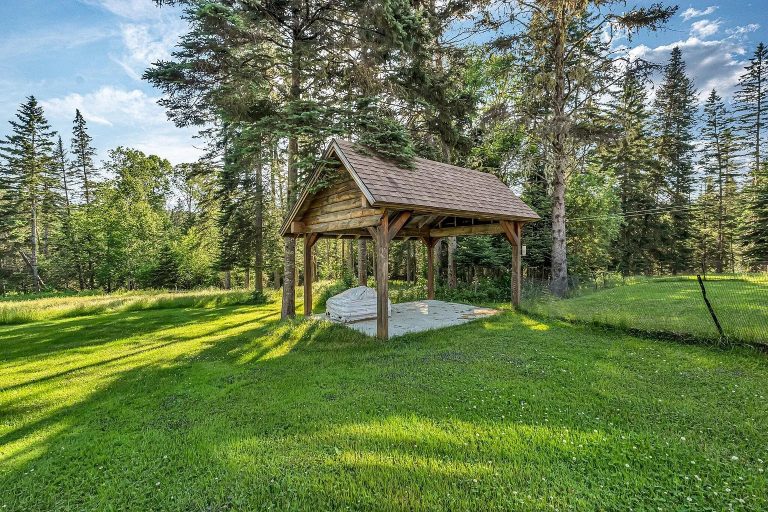 A spacious lawn surrounds the home, creating room for gatherings, outdoor activities, and relaxation. A small stream crosses the property, adding peaceful natural scenery and gentle background sound. The deck and picnic pavilion provide welcoming spaces for outdoor meals and entertaining. With these features already in place, enjoying time outdoors is simple and convenient. The property combines open yard space with wooded surroundings, creating a versatile outdoor environment throughout the seasons.