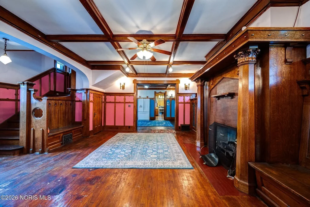 Inside, visitors are welcomed by an impressive entry that sets the tone throughout the home. One of the property’s most remarkable features is the original woodwork, beautifully preserved across the interior. Hardwood floors, ornate trim, solid doors, the staircase, and fireplace all display authentic materials and handcrafted detail that define Victorian design.