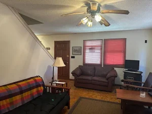 The cabin is located on land leased through the City of Carlinville, an important detail for potential buyers. Continued use of the property requires approval of the new owner by the city before closing, ensuring compliance with local guidelines and maintaining community standards.