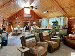 Opportunities like this rarely become available—where quality craftsmanship, usable land, privacy, and outdoor lifestyle come together in one exceptional property. Set on ten unrestricted acres, this impressive hunter’s retreat is thoughtfully designed for recreation, relaxation, and independent living. Featuring a custom log cabin built from timber harvested directly from the property, expansive wraparound porches, a private pond, established trail systems, and infrastructure ready for guests, RVs, or future expansion, this property offers far more than a home—it delivers a complete outdoor lifestyle experience.