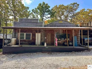 Another major asset is the sizable shop building designed with a distinctive saloon-style character. This structure already includes electric, water, and sewer connections, along with concrete flooring in open bays and materials ready for partial conversion into additional living space.