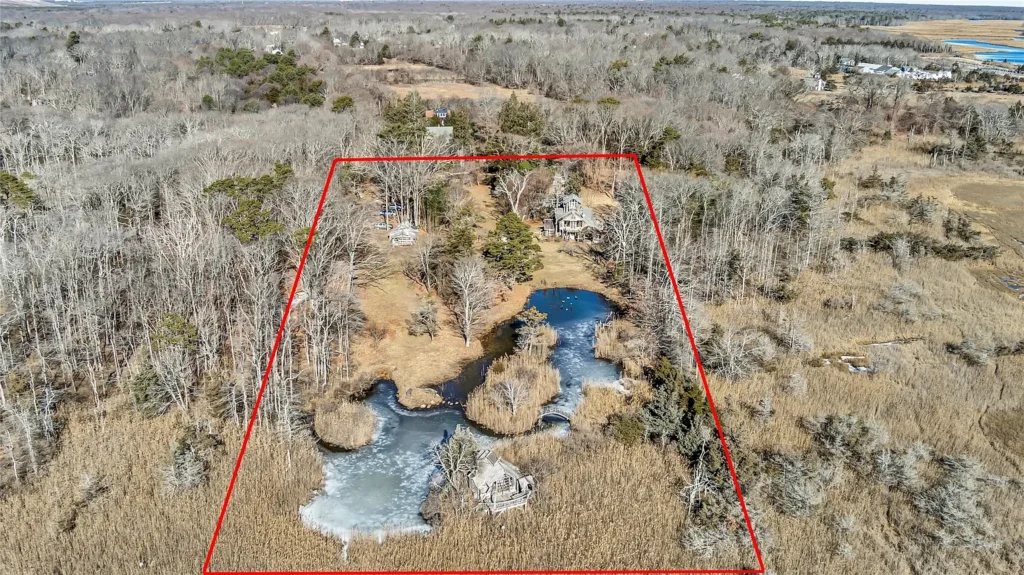 This expansive residence in the heart of a serene hamlet sits on a lush parcel of natural land that stretches into peaceful wooded surroundings where wildlife roams freely and the quiet atmosphere feels like a hidden retreat.