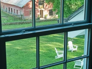 The main residence, originally built in the late nineteenth century, has been carefully restored to preserve its Colonial Revival character while introducing modern comfort and efficiency. Large windows fill the home with natural light and frame picturesque views of gardens, barns, and distant ridges. Spacious living areas provide a welcoming environment for both quiet relaxation and entertaining.
