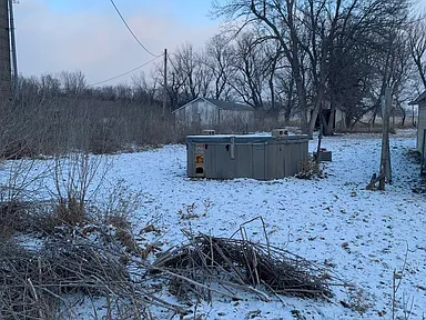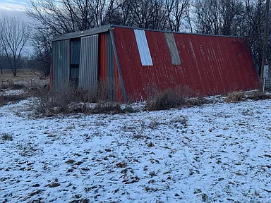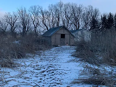 Outside, the property’s acreage includes several outbuildings in varying conditions that could be used for equipment, workshops, or other hobbies associated with rural life.