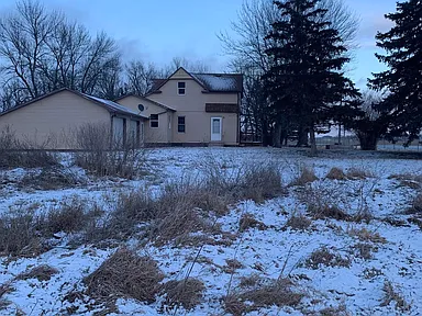 This two-story home sits on over three acres of land just outside the city limits of Flandreau in Moody County, offering a mix of open outdoor space and rural privacy with easy pavement access.