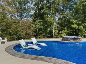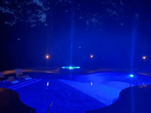A handheld remote controls pool lighting, spa lighting, heating, and jets, allowing effortless enjoyment whether hosting gatherings or relaxing under the stars.