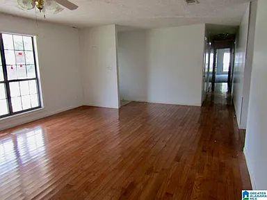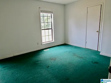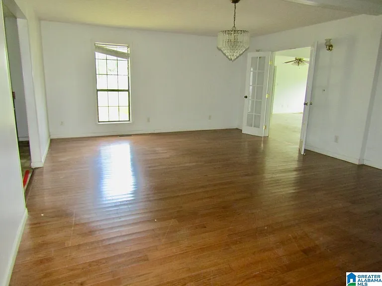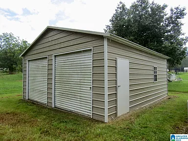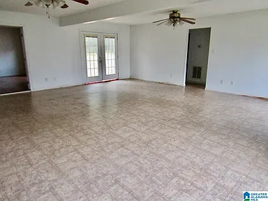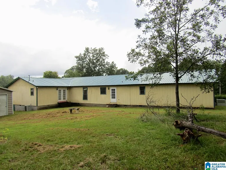 This large single-story home is situated on a large lot in Sylacauga, Alabama, offering a peaceful setting and ample space for outdoor living and activities.