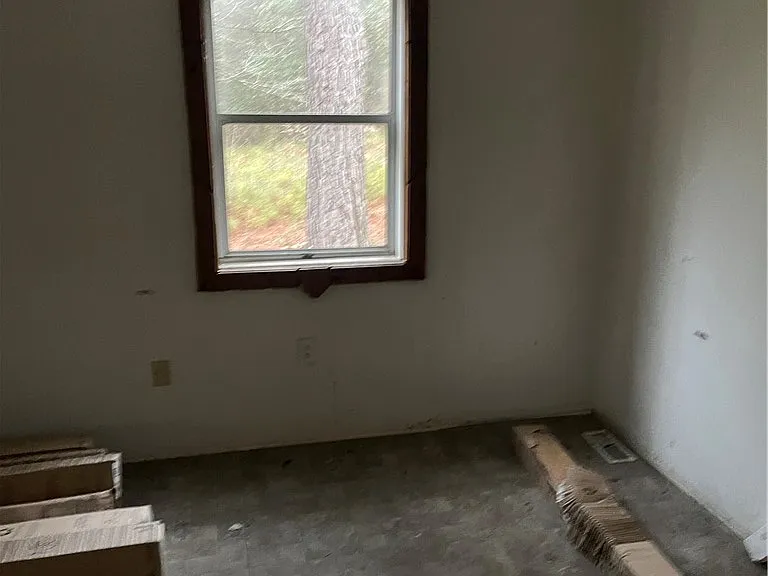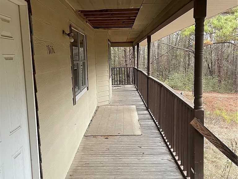 According to other real estate trade sources, the home is described as a “fixer-upper,” meaning it needs some upgrades and repairs, including the kitchen and other interior areas, and sits on just over an acre on a tree-lined, unpaved road.