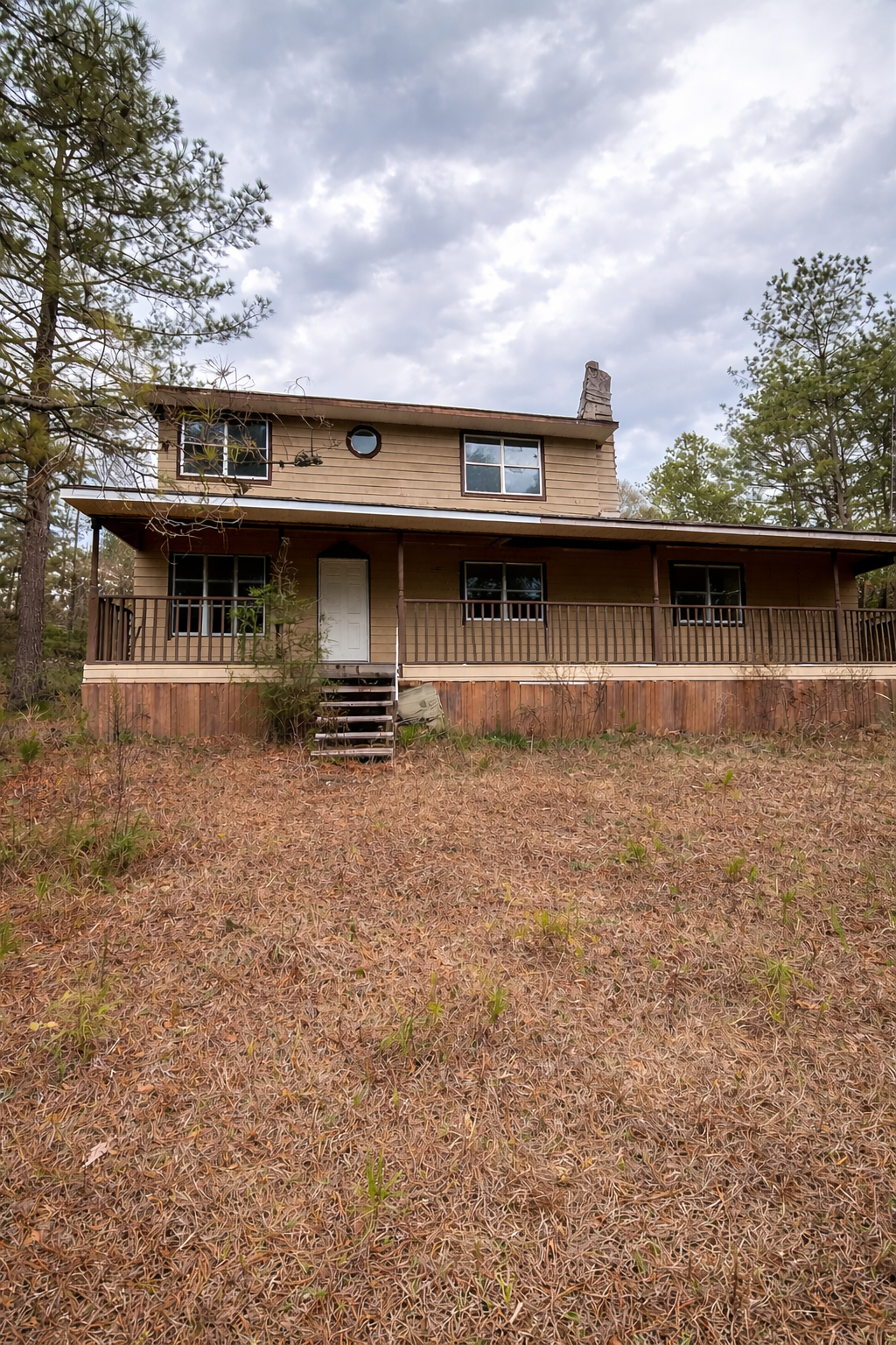 According to other real estate trade sources, the home is described as a “fixer-upper,” meaning it needs some upgrades and repairs, including the kitchen and other interior areas, and sits on just over an acre on a tree-lined, unpaved road.