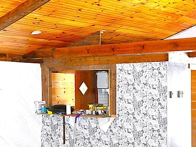 A notable feature is a long partially covered veranda that provides outdoor space for enjoying natures. The interior presents characteristic elements that may require refreshment, but also offers opportunities for personalization and creation of modern spaces according to individual tastes.