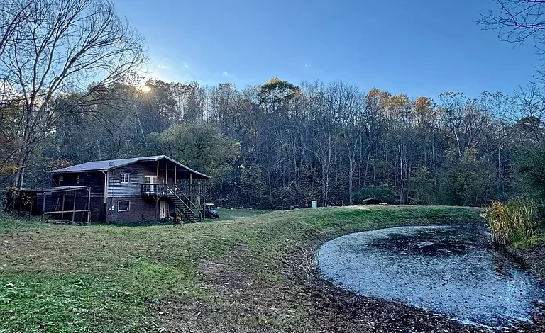 The property is served by a reliable water well and includes several outdoor features that enhance its appeal. A small pond near the home and a flowing creek add natural beauty and functionality. A wraparound covered deck overlooks the landscape, offering a perfect space to relax and enjoy wildlife, including frequent deer sightings.