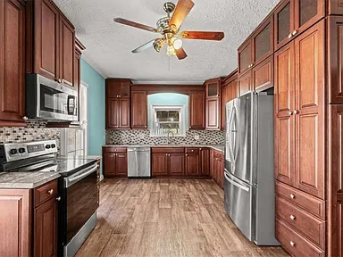 Set on an expansive lot surrounded by mature trees, the outdoor space provides both privacy and flexibility for recreation, gardening, or future improvements. The property includes additional outdoor features that increase its functionality and potential for everyday enjoyment.
