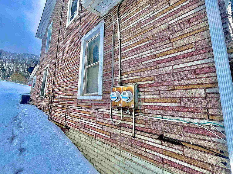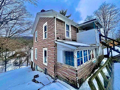 The building is constructed of material, with a concrete block foundation and brick exterior structure, a characteristic feature of older homes in this area that gives it character and longevity.