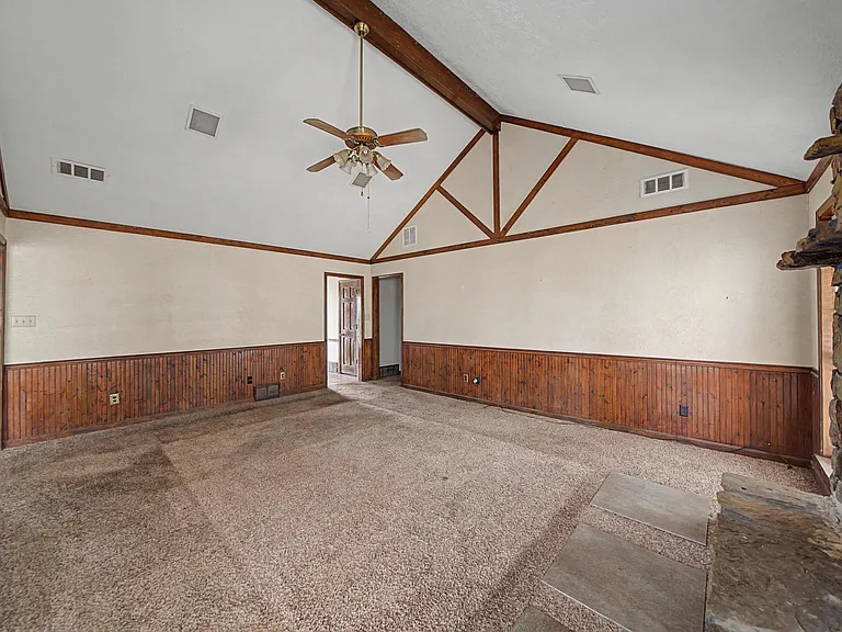 The main living space provides a welcoming place for relaxing, spending time with family, or entertaining guests. Windows allow natural light to flood the home during the day, helping to create a bright and welcoming interior atmosphere.