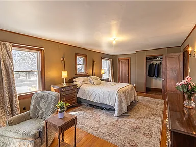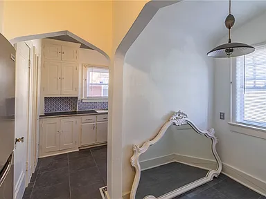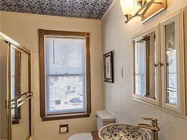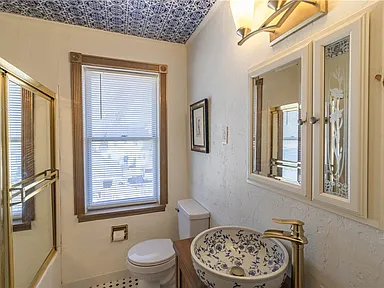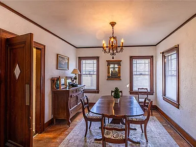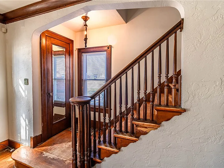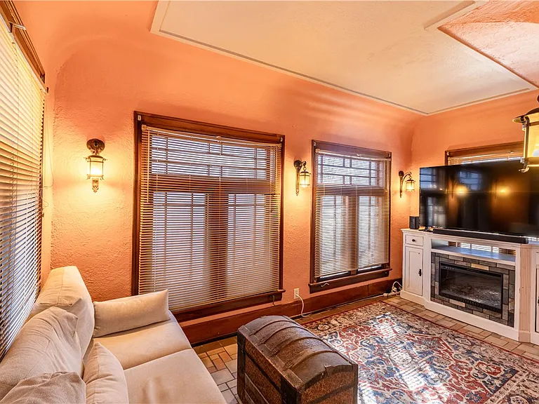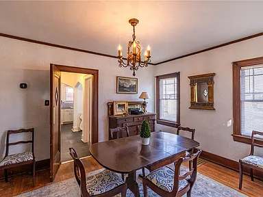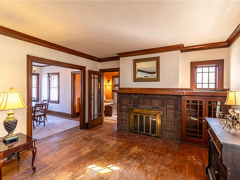 The home features a design with architectural details that reflect its original construction style and charm. Inside, the layout includes multiple living spaces that can be adapted to suit modern needs while still maintaining a comfortable flow.