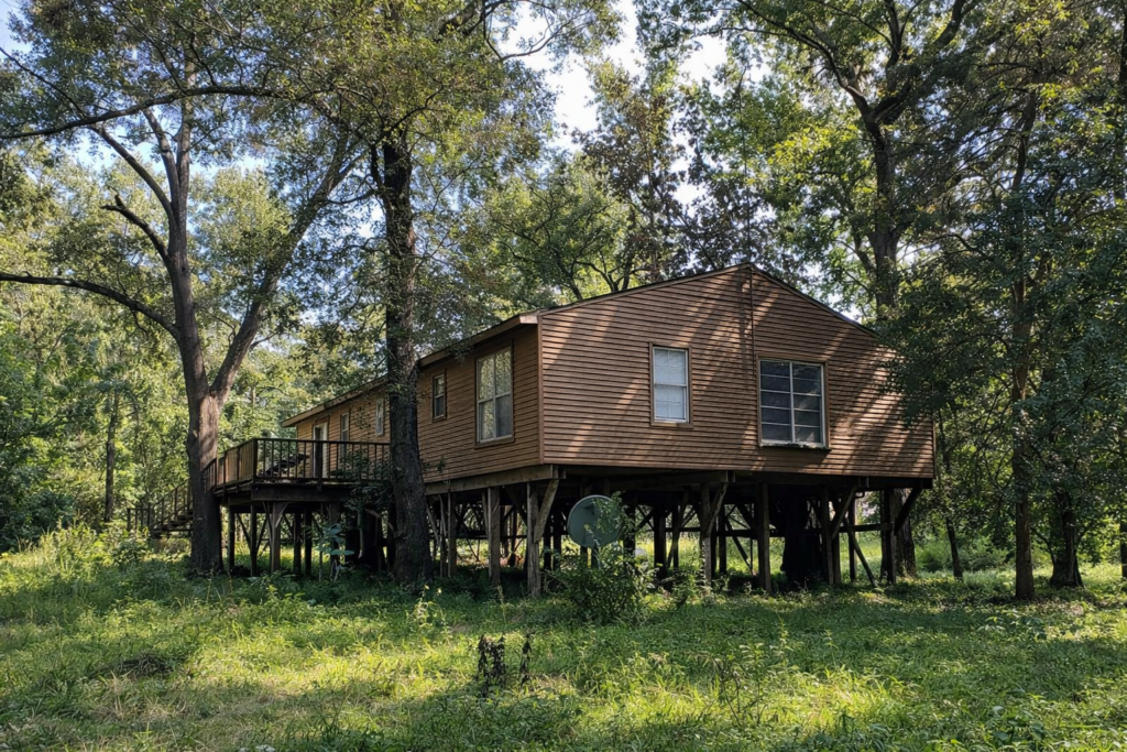 This property is located in a quiet area surrounded by nature in New Caney, Texas, offering a private environment with lots of greenery and large trees that create a relaxing atmosphere and separated from the urban noise.