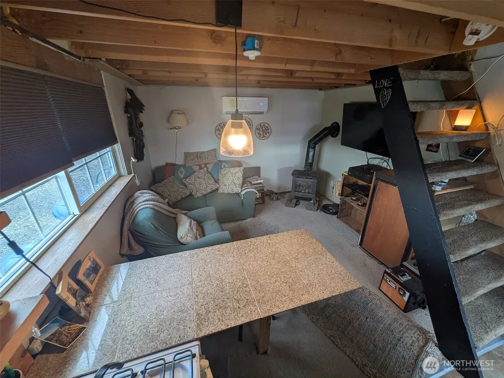 Inside, the layout is functional and straightforward. The main level includes the kitchen, living area, and one bedroom, while the second bedroom is located upstairs for added separation and privacy. Finishes are simple and practical, giving the home a clean starting point that can be enjoyed as-is or personalized over time. The additional bunk house expands the usefulness of the property and makes the overall setup even more versatile.