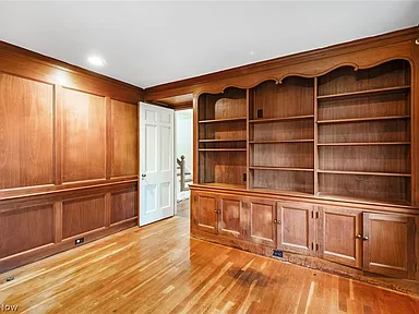 Rich in classic Tudor-inspired details, the property stands out with its elegant presence, hardwood floors, formal dining space, and wood paneling that add warmth and distinction.