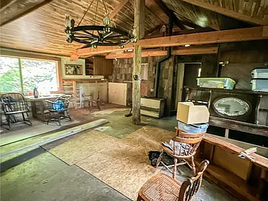 A large covered front porch adds warmth and charm, creating the perfect place to relax and enjoy the natural surroundings. The rustic character is already here, with features that appeal to buyers looking for something simple.