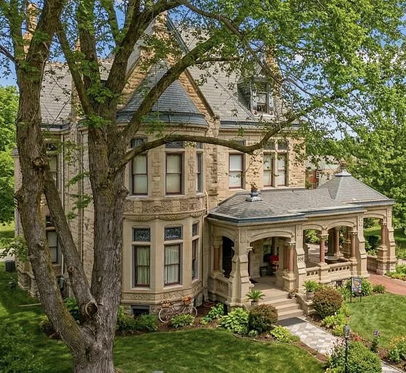Inside, the home is rich with hand-carved woodwork, stained glass, ornate ceilings, elegant chandeliers, and fireplaces that bring warmth, beauty, and a strong sense of warmth to every room.