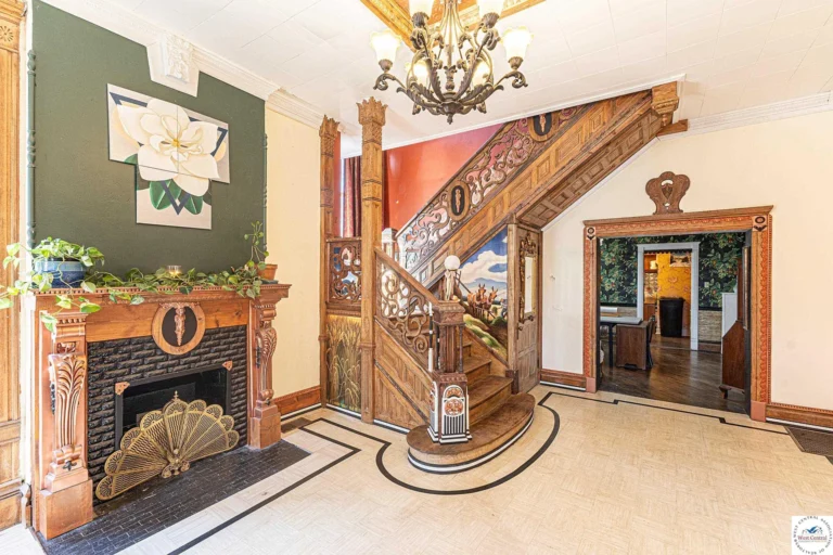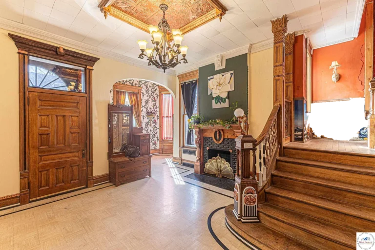Inside, the home welcomes you with a grand foyer, high ceilings, detailed woodwork, and spacious living areas that highlight its historic craftsmanship. The layout creates an elegant flow throughout the interior, giving the home a sense of warmth, openness, and charm that is difficult to find in modern construction.
