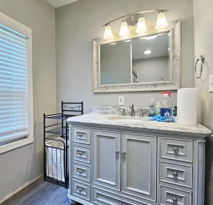 One unique detail is that the home currently does not have a kitchen, which allows the buyer to design the space from the beginning and create a layout that fits their own needs.
